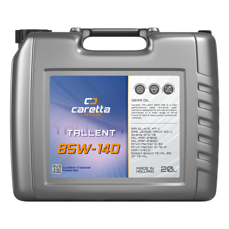 Caretta Tallent 85W-140​ is a high performance total driveline gear lubricant designed to provide excellent lubrication in a wide range of drive trains of light & heavy duty commercial vehicles.